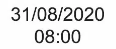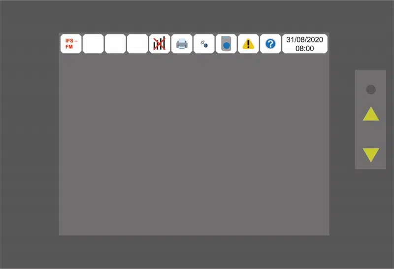 Viser dato og klokkeslæt. Hvis årstallet er forkert, låser skærmen. Kontakt din driftsleder. |