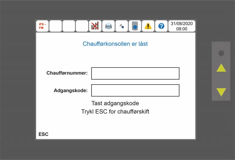 Når du trykker på ”Lås konsol”-knappen, får du et nyt loginbillede, hvor dit chaufførnummer er indsat på forhånd.