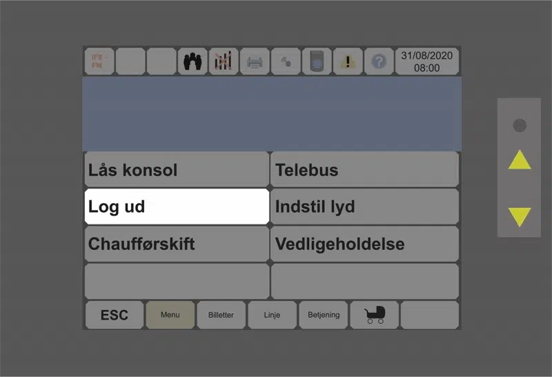 Når du skal afslutte din vagt eller sætte bussen i depot, skal du logge ud ved at trykke på ”Log ud”.