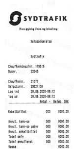 Så bliver der udskrevet en salgsopgørelse over dit salg, og en ny chauffør kan logge ind.