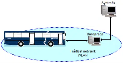 WLAN er et trådløst netværk, som findes på garageanlæggene, og på busstationerne. Data sendes og modtages fra WLAN-masten.